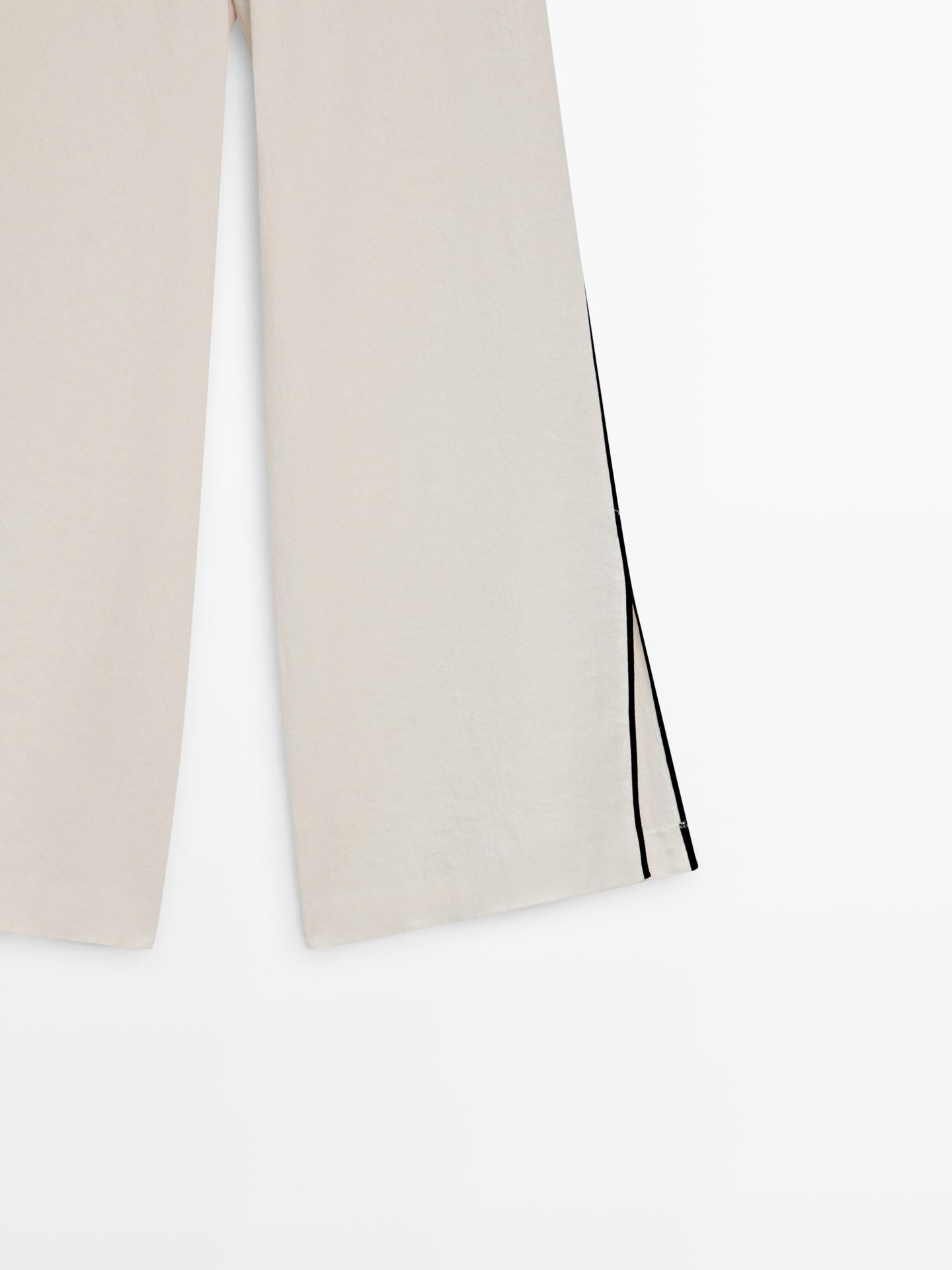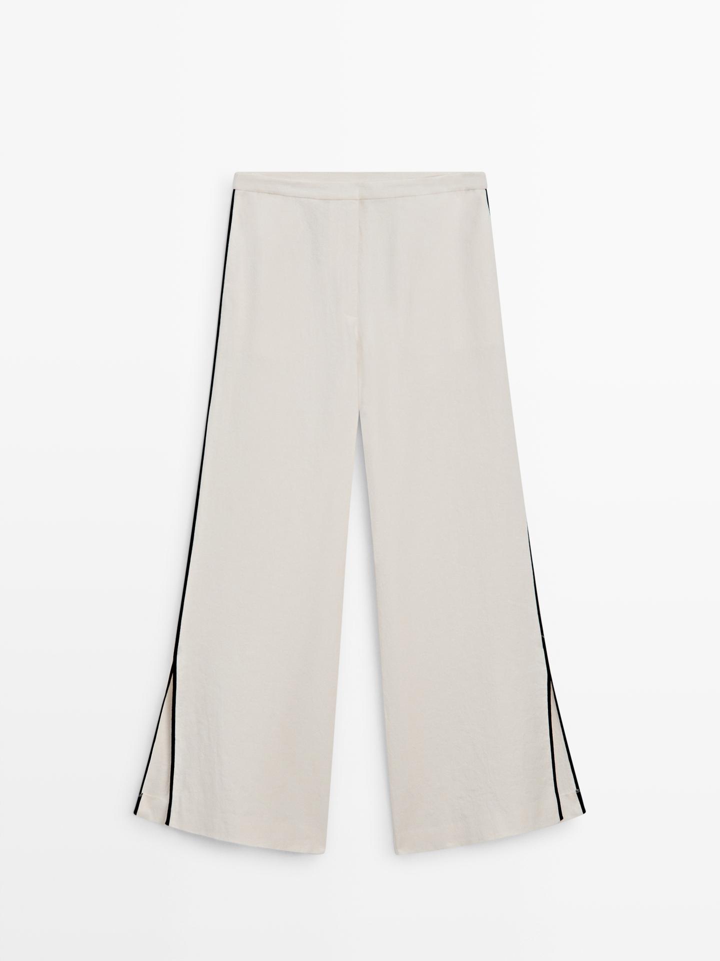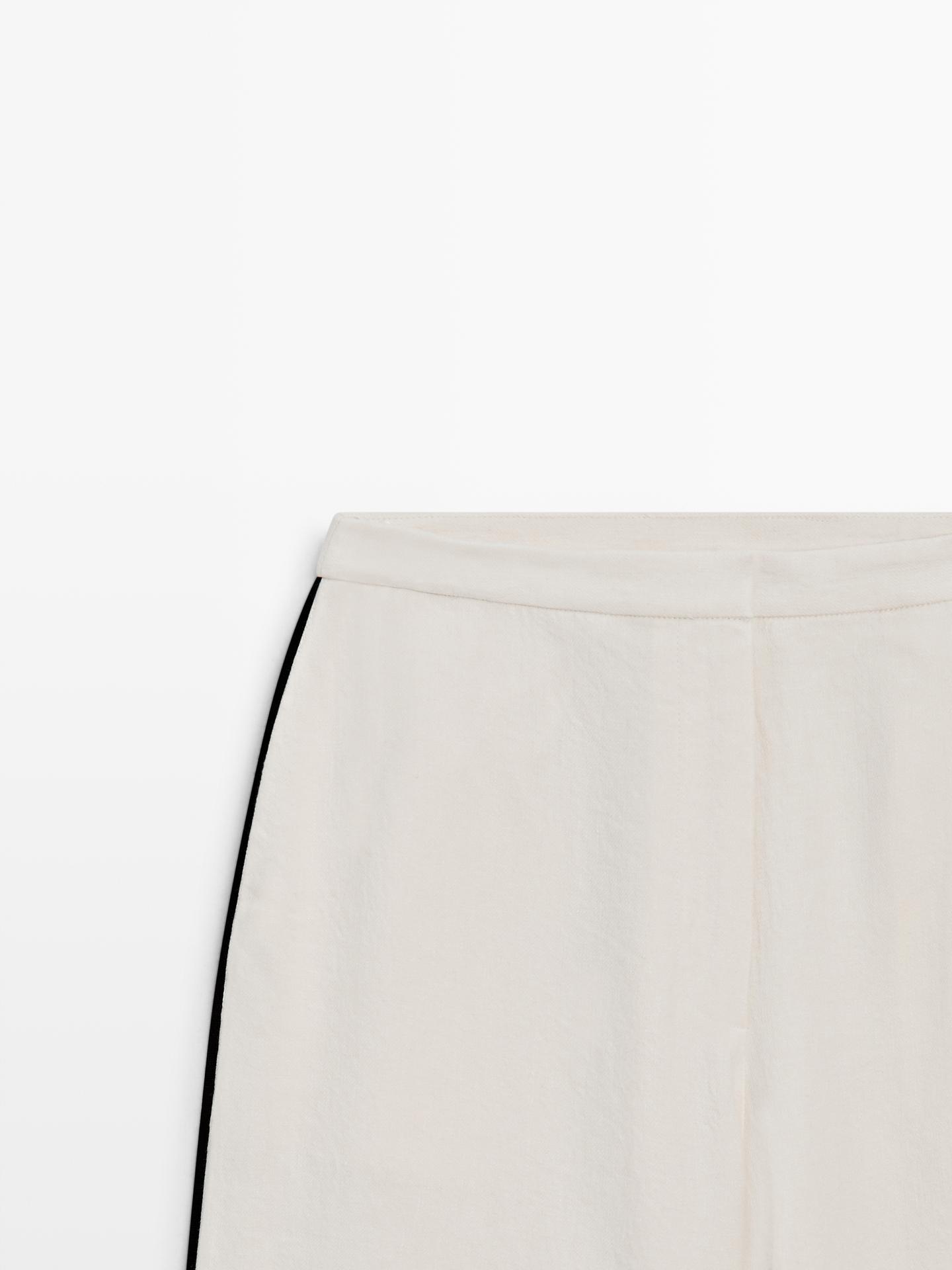 Ses liserés contrastants apportent une touche subtile mais affirmée, créant un look raffiné et contemporain. La taille ajustée avec fermeture discrète sublime la silhouette tout en garantissant un maintien parfait.